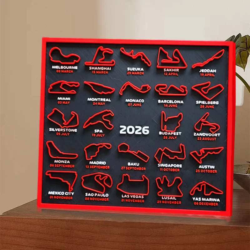 Add a touch of speed and style to your space with our F1 Racing Map Poster, perfect for F1 fans and racing enthusiasts. Designed with a modern American style, this poster showcases the 2026 Formula 1 racing calendar in a unique and eye-catching format, making it a great addition to your home, office, or entertainment area.
